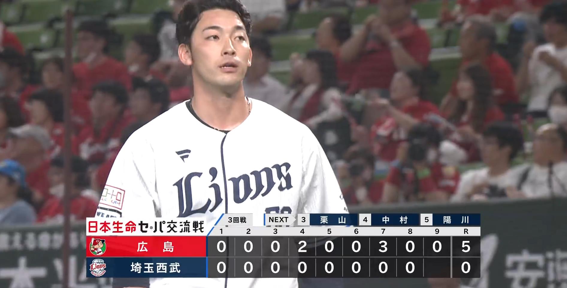 あとDAZNの動画の最後に「今日初めての三者凡退で…」ってあったけど、それでよく5点で済んだなぁ。