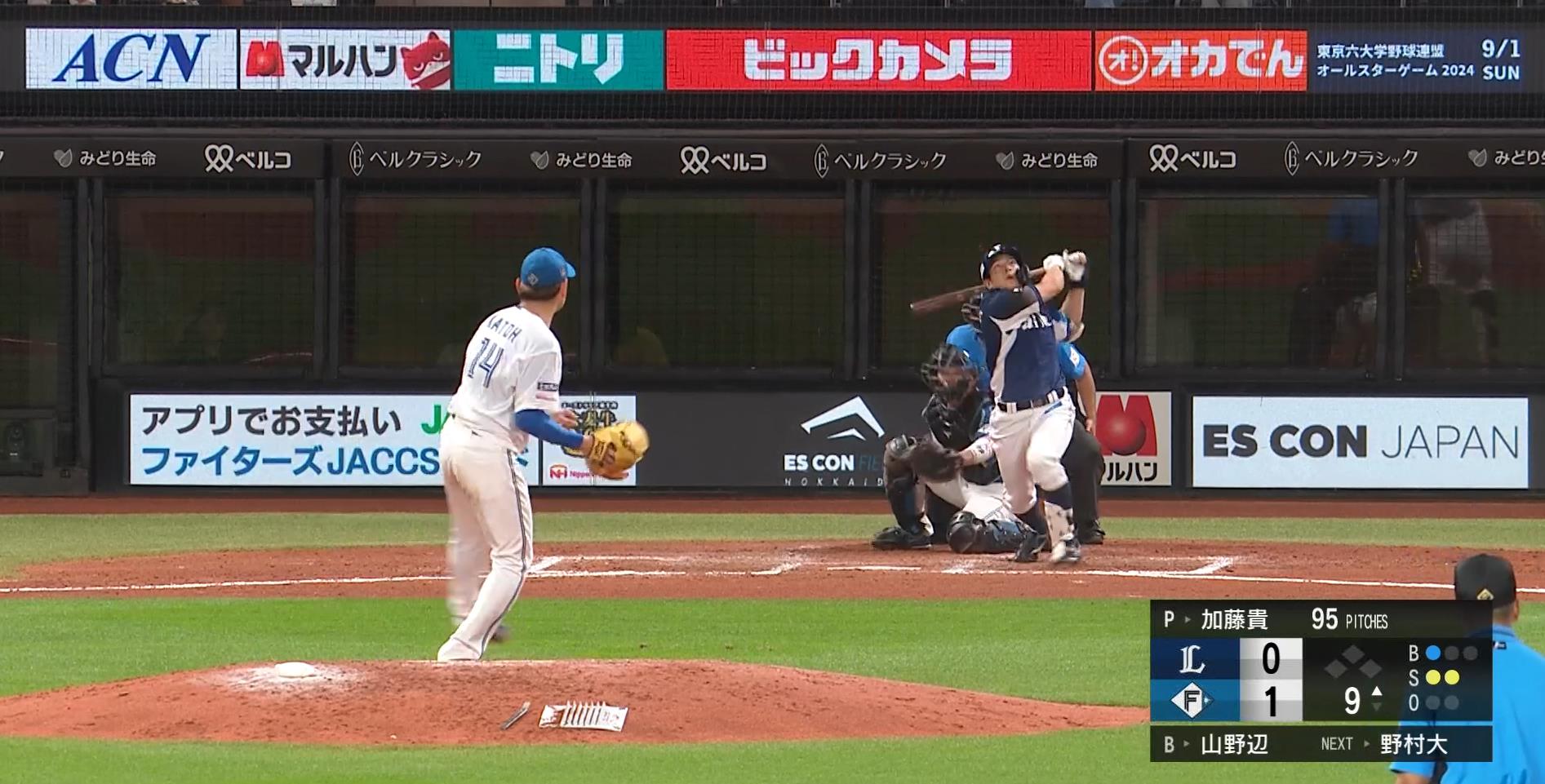 代打 #山野辺翔 選手の安打から、9回に試合を振り出しに戻します!