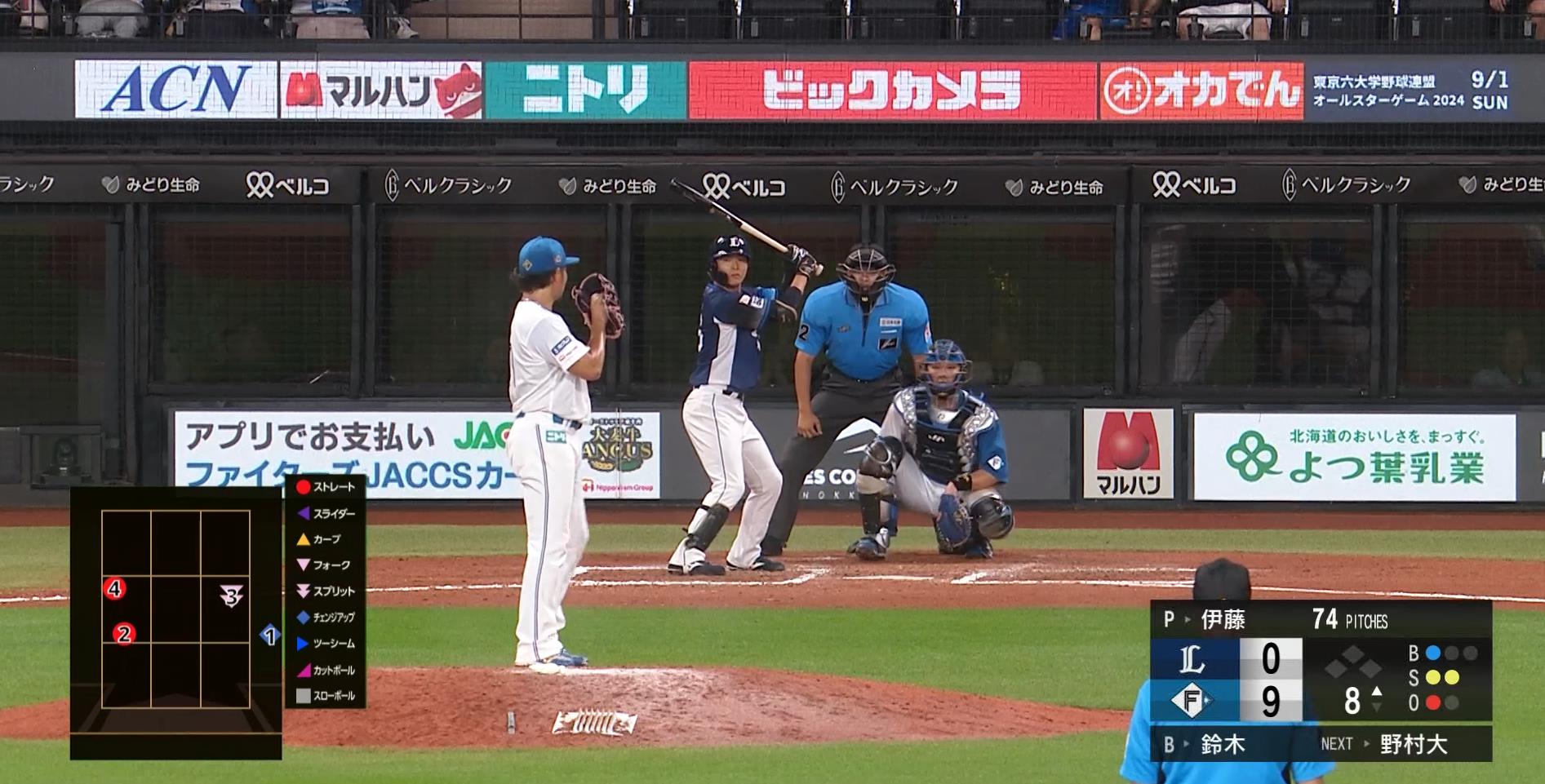 炭谷0球/牧野11球(3.4.4)