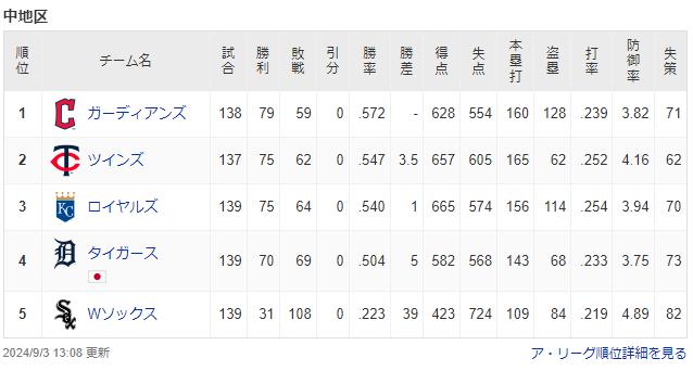仮に今年ホワイトソックがパリーグに居て7球団で戦ってたらどんな順位になってるかめちゃ興味深い。まあ言ってもバッターのレベルは違うから西武より下は無いだろうが