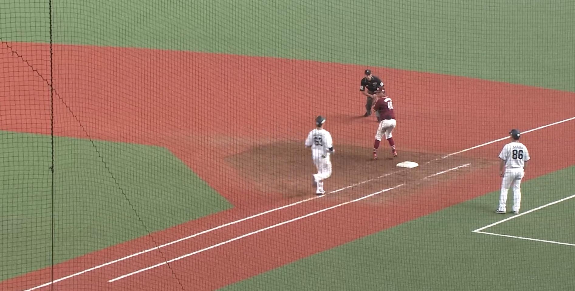 一塁のランナーコーチは何しとった?