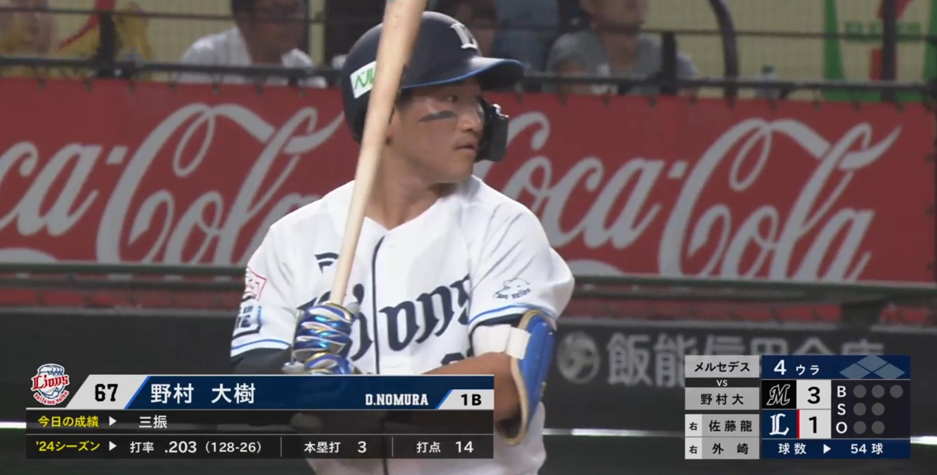 野村は長打産出能力が高くてあの打率なのにOPS.6超えてるし西武の中だとかなり上等な部類だよ