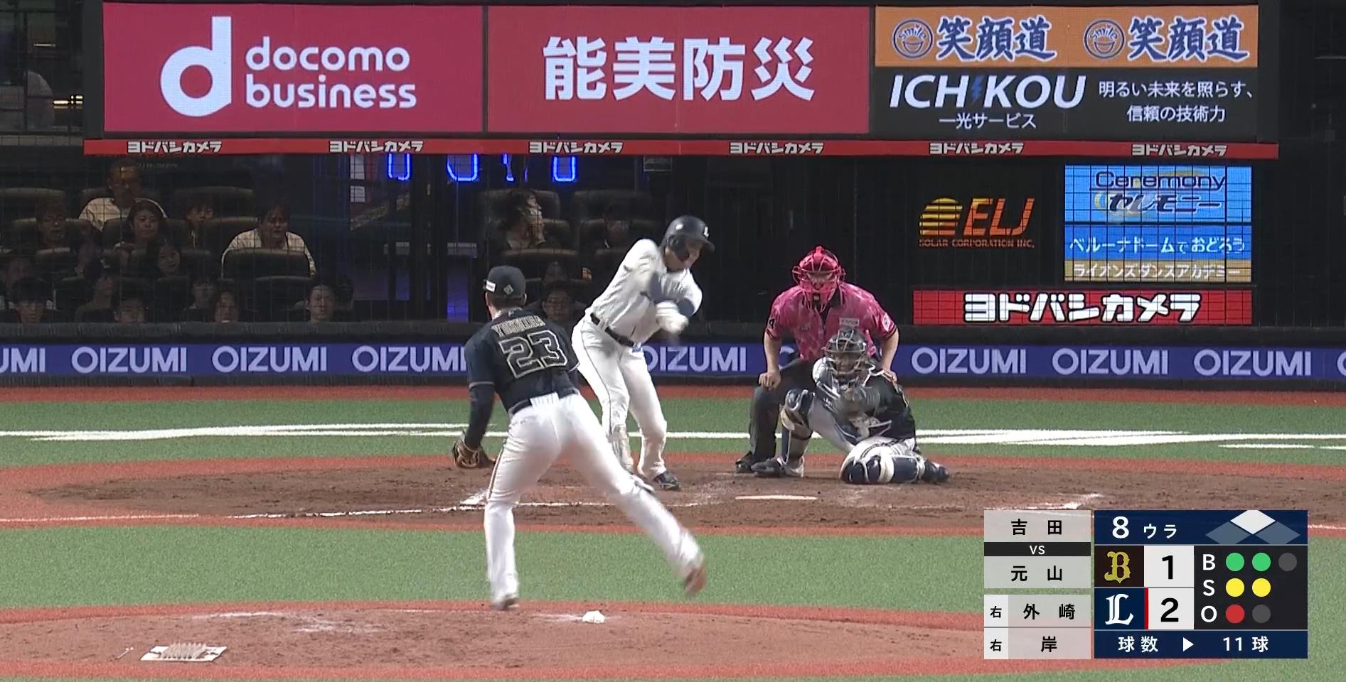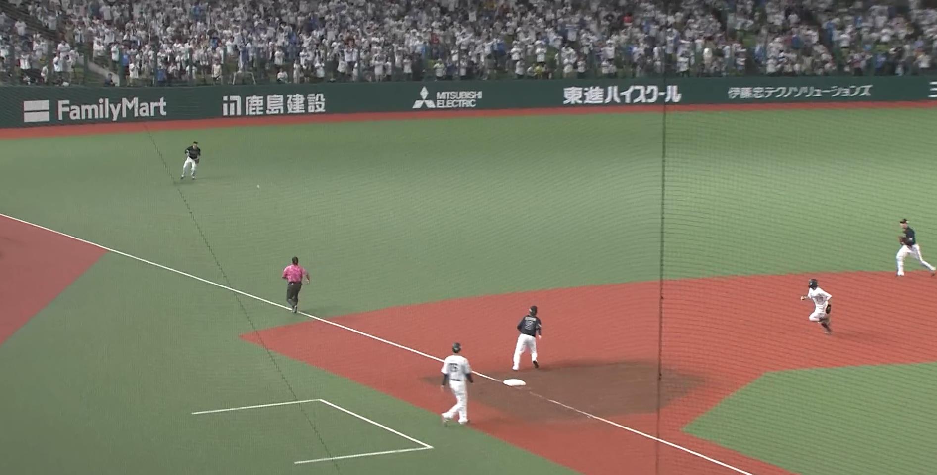 盗塁がリクエストされてアウトに見えたけど証拠不十分でセーフ。元山ヒットで打球判断悪くて帰ってこれなかった。