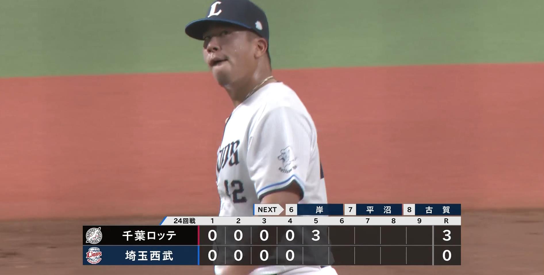 連続二塁打で反撃!#岸潤一郎 選手、#平沼翔太 選手の連打で1点を返します!#埼玉西武ライオンズ #seibulions #ありがとうまっすー pic.twitter.com/nXlUJWcvM8