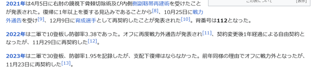 戦力外or自由契約 4年連続4回目じゃねえかよ