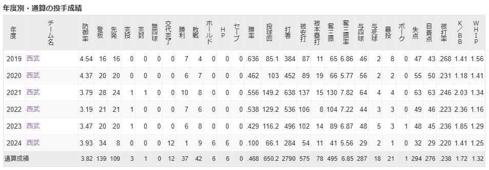 雑な起用法のせいで成績悪くなったと思ってる人多そうだけど、昨年もFIP4.52でお世辞にも内容がよかったとは言えないから、客観的に見てあのまま先発を続けてても良い成績を残せたとは言い切れないんちゃうか