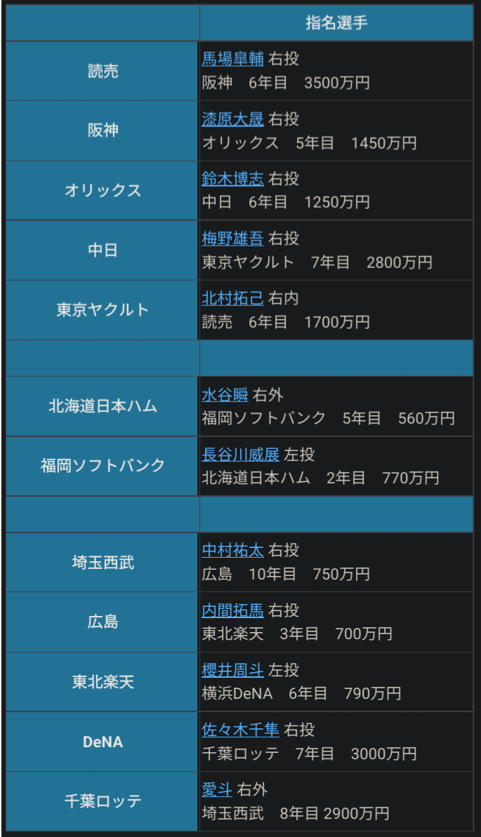 どの球団も出しやすいのはここらへんよな