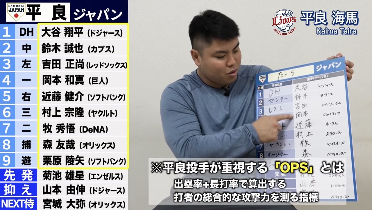 侍クラスなら奪三振能力高い投手を揃えられるし攻撃フォーメーションの平良は正解やろ