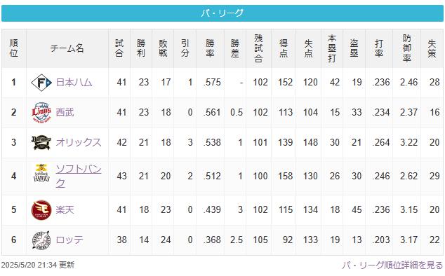 — パ・リーグ.com / パーソル パ・リーグTV【公式】 (@PacificleagueTV) May 20, 2025